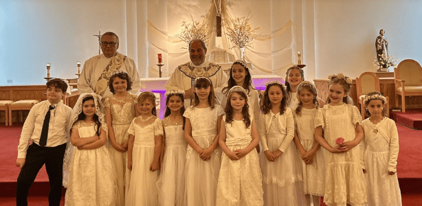 Children should have completed 2 years of religious education before making their first Holy Communion. Depending on when your child begins his or her religious education, they may receive their First Eucharist in either the 2nd Grade or 3rd Grade (or a higher grade. It is never too late!)